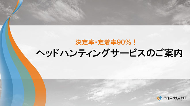 採用成功率・定着率ともに90%以上。求人媒体では届かない中核人材に、独自のサーチ手法でアプローチ。プロハントのサービスの特長と支援プロセスをまとめた資料です。